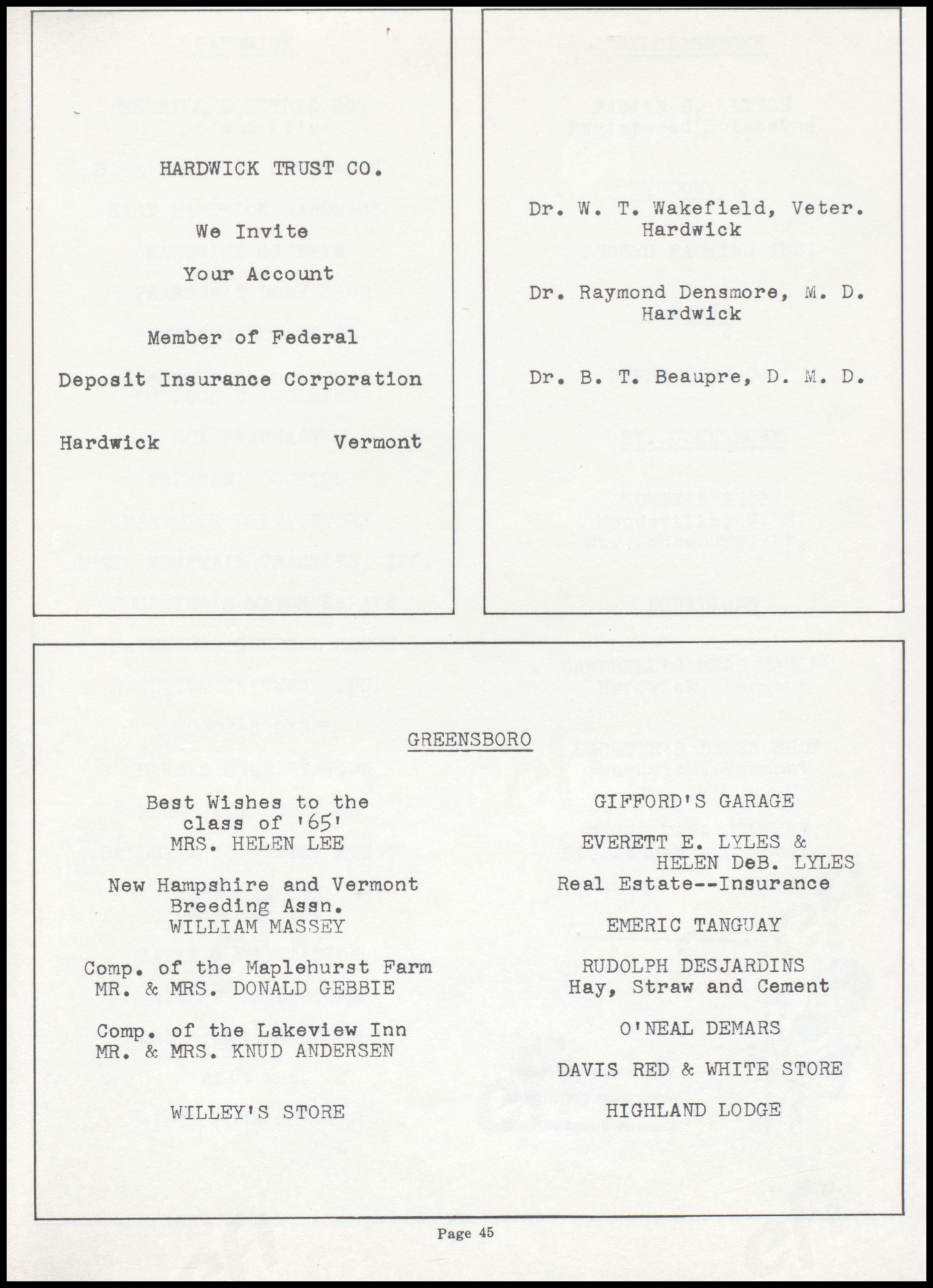 Greensboro High School History & Yearbooks - 1965